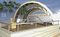 Permangono i doppi volumi con altezze minime dei locali a 2,70 ml confermando le superfici con la semplicità ed eleganza di un modulo esagonale. Due piani fuori terra, tutte le principali funzioni abitative: soggiorno (25,13 mq), cucina (21,24 mq), due bagni (5,30 - 5,97 mq), lavanderia (4,32 mq), Guardaroba (14,40 mq), tre camere di cui una matrimoniale (12,50 - 12,70 - 18,40 mq) tutte dotate di balcone al piano (6,37 mq).