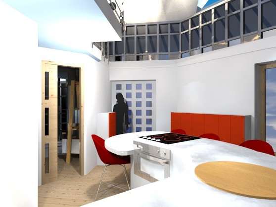 Cucina composta da area cottura, pranzo, lavanderia e WC.